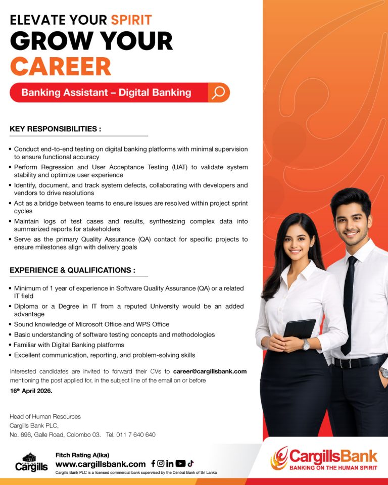Cargills Bank Job Vacancies 2026 – Banking Assistant (Digital Banking)