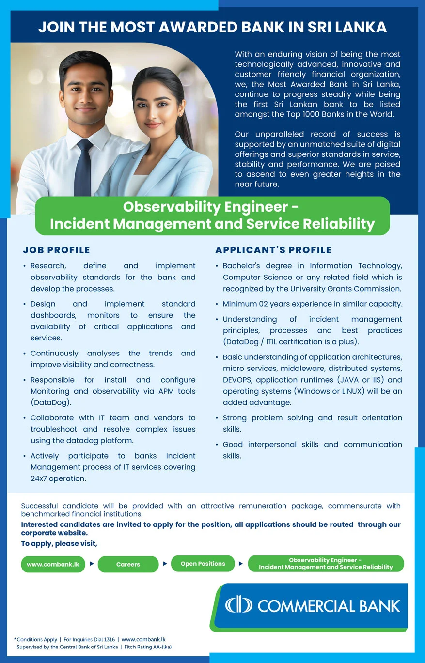 Commercial Bank Job Vacancies 2025 - Observability Engineer