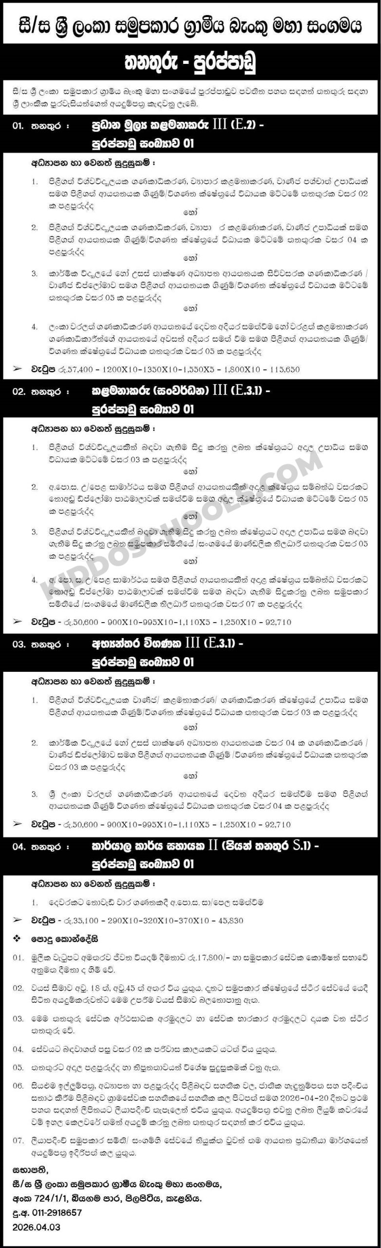 CRB Bank Job Vacancies 2026 (Samupakara) call for Office Assistant/Peon, Internal Auditor, Manager (Development), Chief Financial Manager. Interested candidates can be apply for this opportunities.