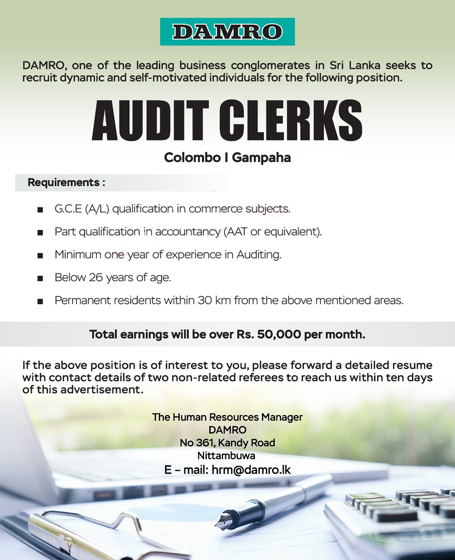 Damro Job Vacancies 2026 call for Audit Clerk. Eligible candidates can be apply for this post.