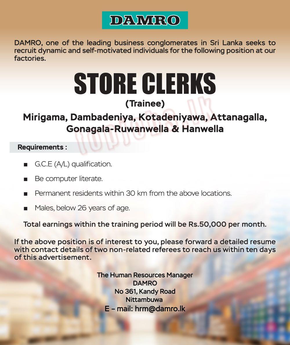 Damro Job Vacancies 2026 call for Store Clerks Trainee. Interested candidates can be apply the opportunities.