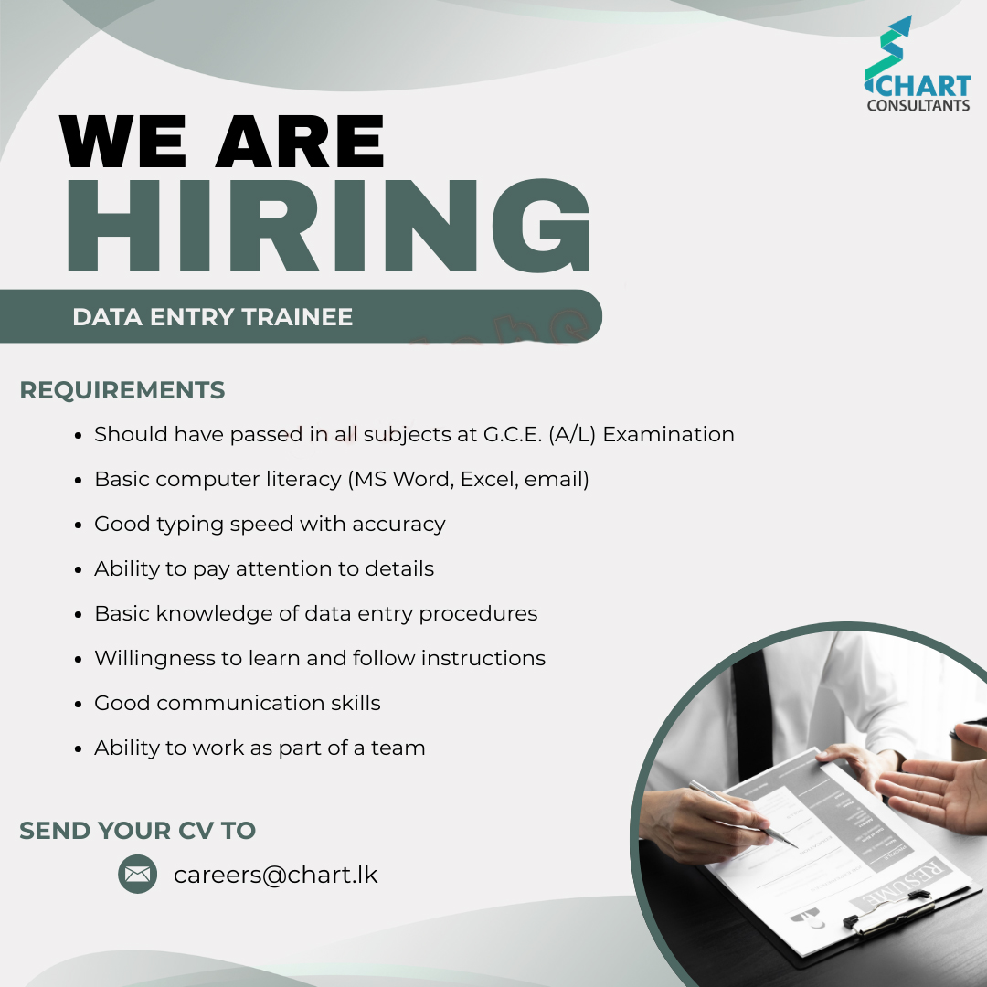 Data Entry Job Vacancies 2026 call by Chart Consultants (Private) Limited. Eligible candidates can be apply for this post.