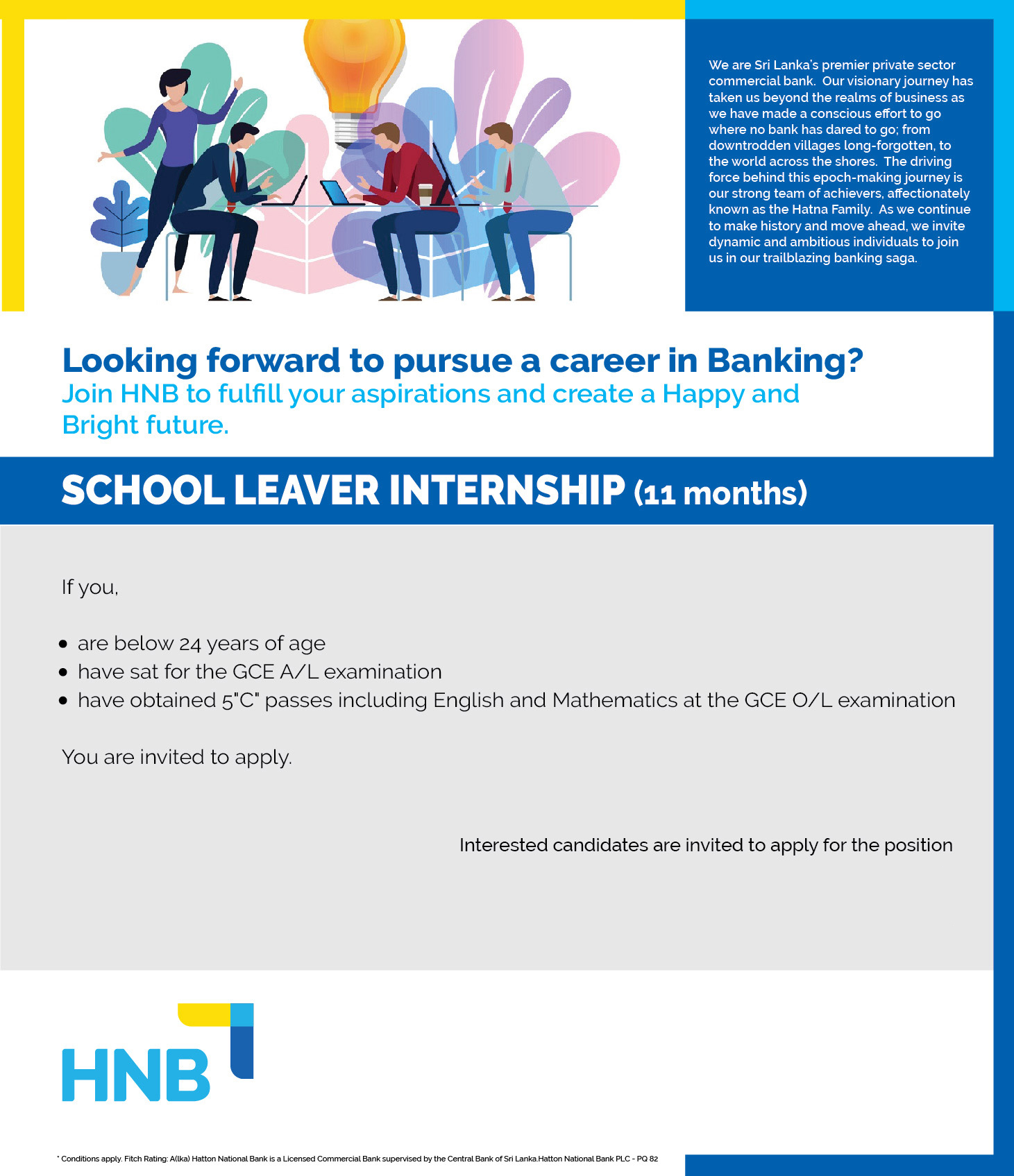 HNB Bank Job Vacancies 2026 call for Internship (School Leavers). Interested candidates can be apply for this opportunities.