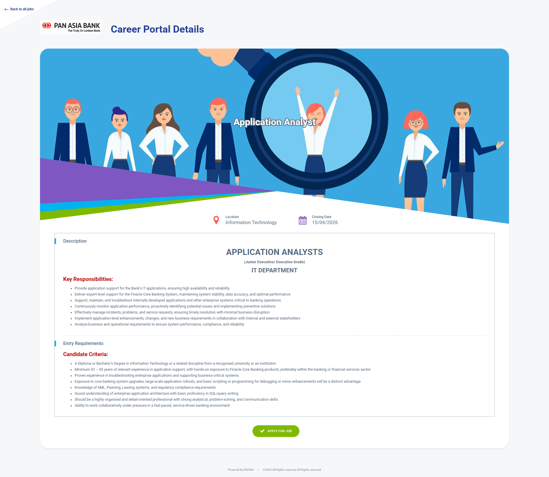 Pan Asia Bank Job Vacancies 2026 – Application Analyst (IT Department)