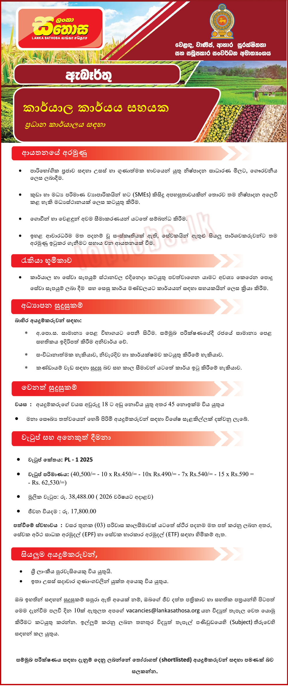 Sathosa Job Vacancies 2026 – Office Aide