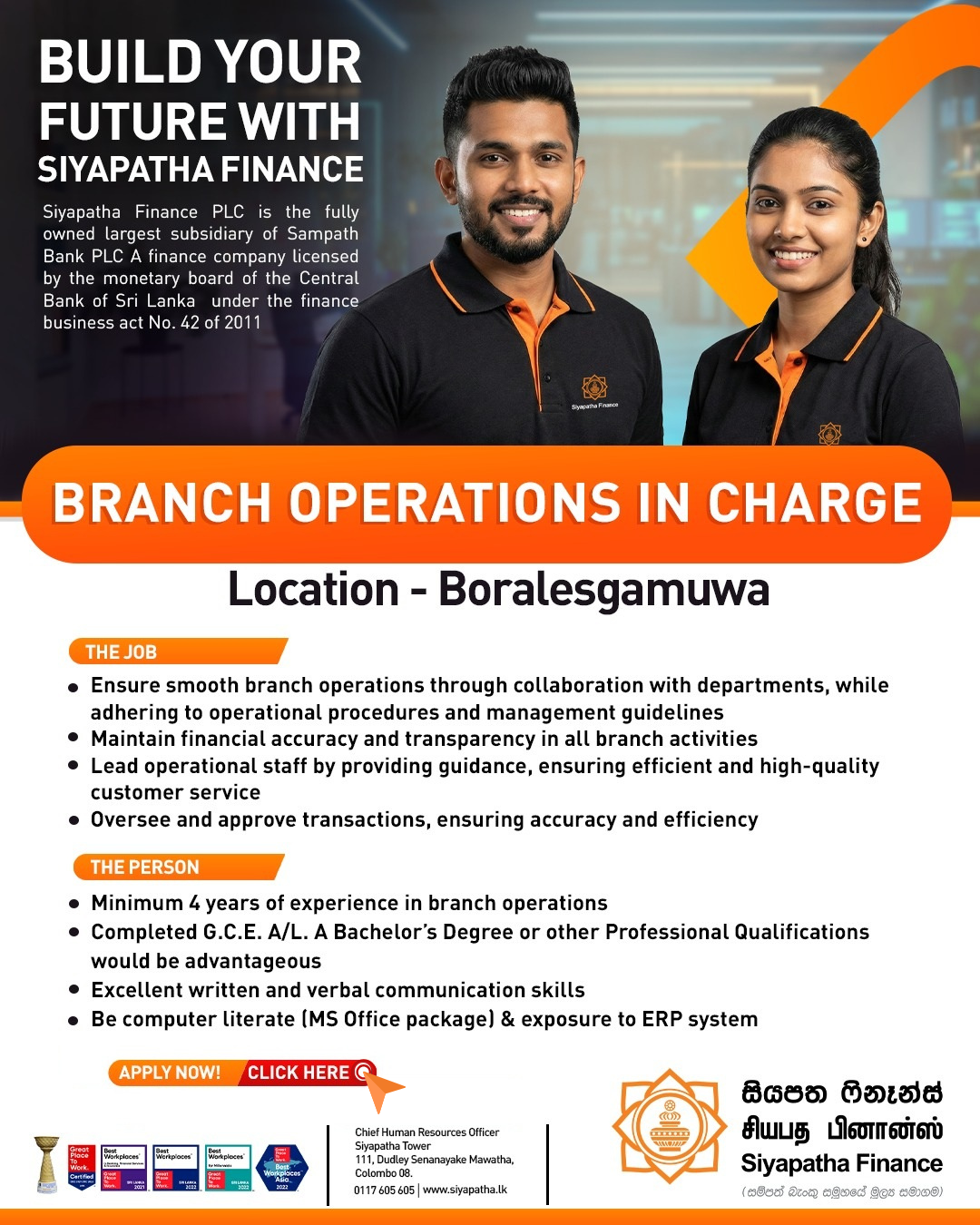 Siyapatha Finance Job Vacancies 2026 call for Branch Operations In Charge. Interested candidates can be apply for this opportunities.