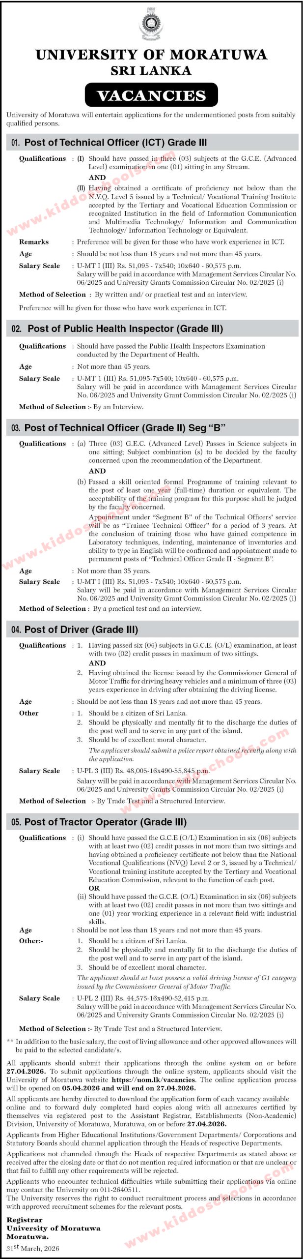 University Of Moratuwa Job Vacancies 2026 called in April Month. Interesting candidates can be apply for this opportunities.
