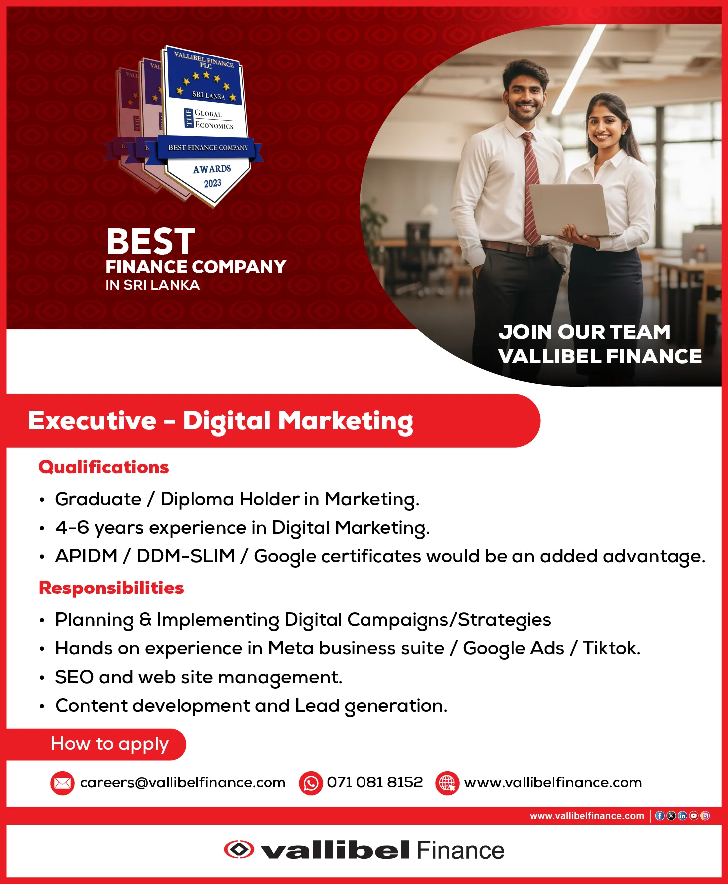 Vallibel Finance Job Vacancies 2026 - Executive (Digital Marketing)